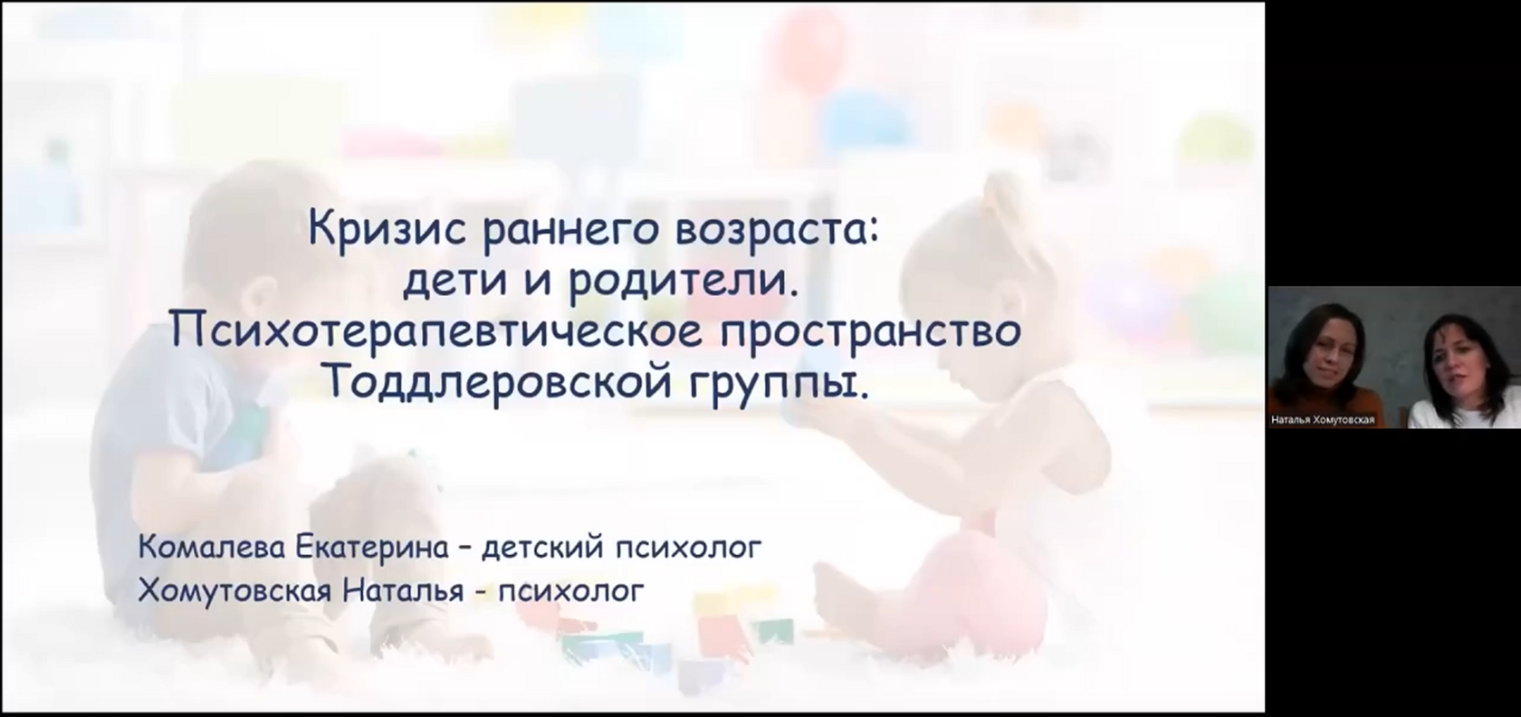 Вебинар «Кризис раннего возраста: дети и родители. Психотерапевтическое пространство тоддлеровской группы»